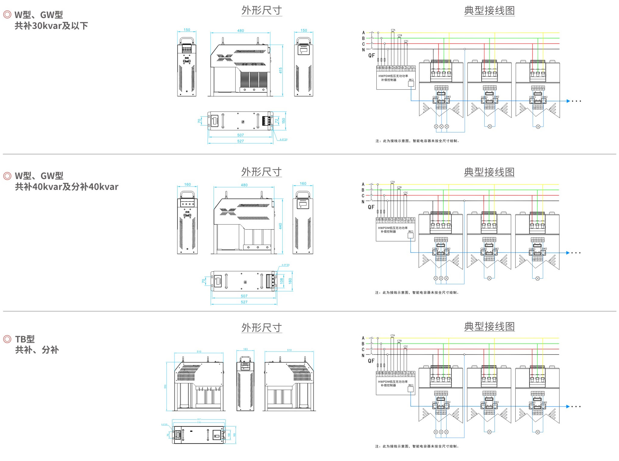 外形尺寸及接线图: